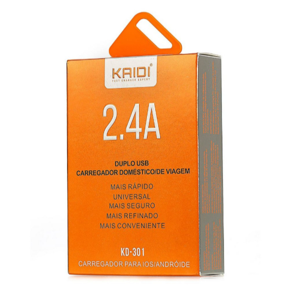 01 Carregador USB 2 Portas 2.4A - KD-301 Kaidi Turbo (Não acompanha cabo)